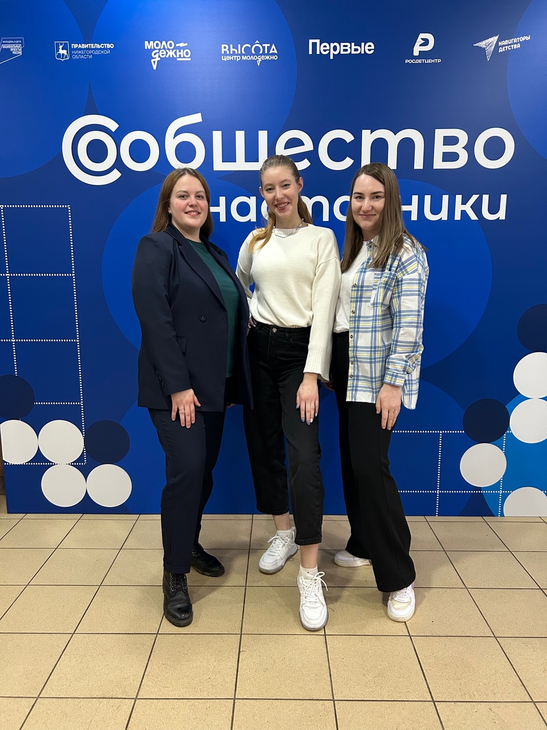 С 9 по 10 апреля команда воспитательного отдела Борского Губернского колледжа Сахарова Надежда Владимировна, Чупакова Анна Сергеевна и Бойко Ксения Ивановна приняли участие в первом модуле проекта «Сообщество. Наставники», который состоялся в Кстовском районе.