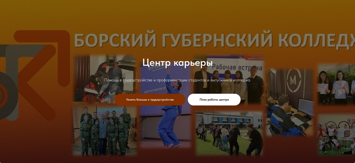 Центр карьеры колледжа — отдел, который реализует задачи по маршрутизации и содействию в трудоустройстве обучающихся и выпускников в соответствии с освоенной профессией или специальностью среднего профессионального образования, а также в ранней профориентации школьников м.о.г. Бор