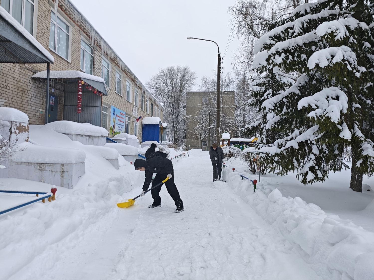 Ребята дружно и с хорошим настроением убрали снег с дорожек и игровых площадок, сделав территорию детского сада более безопасной и комфортной для воспитанников и сотрудников учреждения.